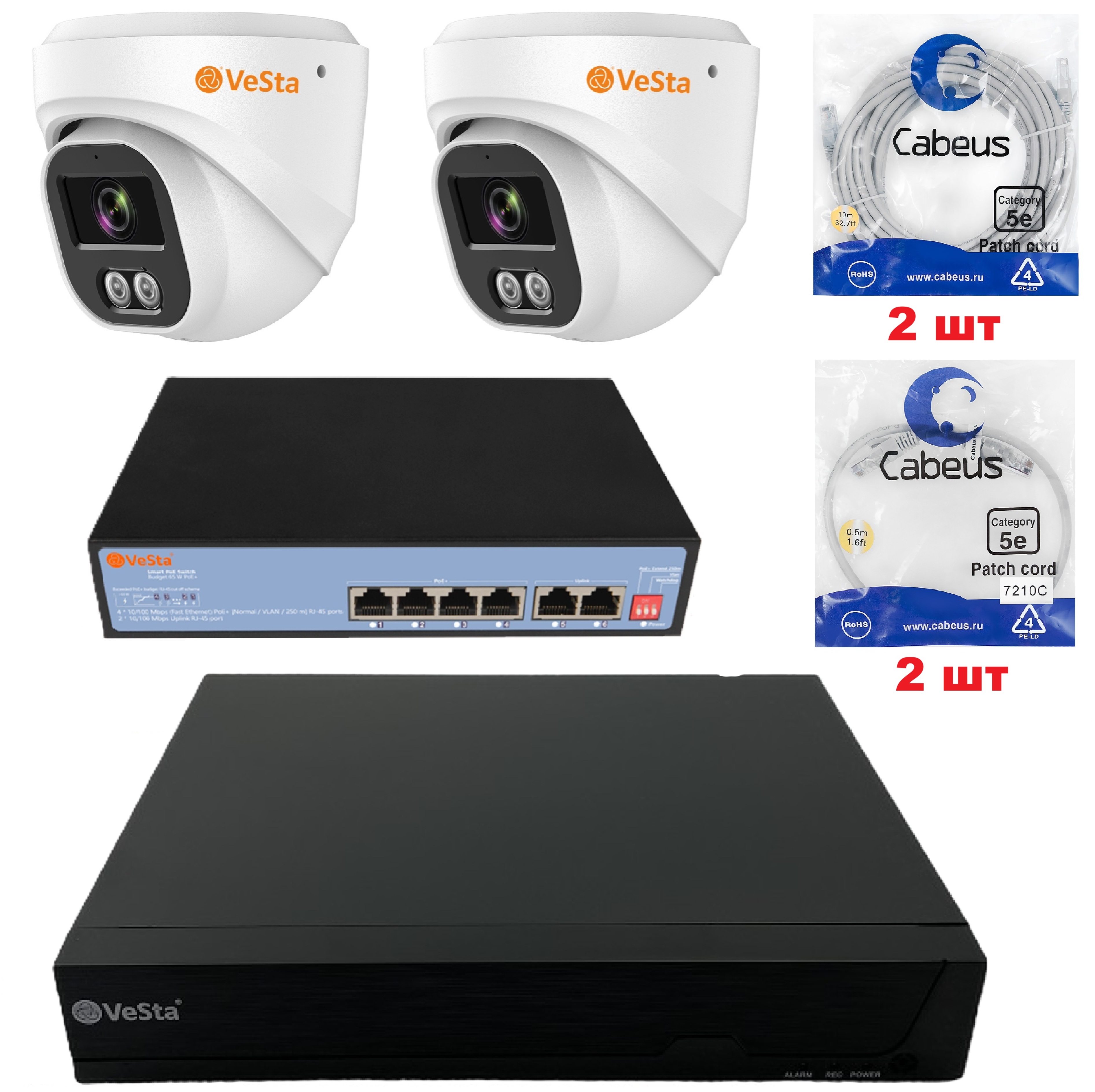 - IP Видеокамера VC-RG441 (M132, f=2.8, Белый, IR, PoE, встроенный микрофон), 4 Мп, VeSta - 2 шт.;