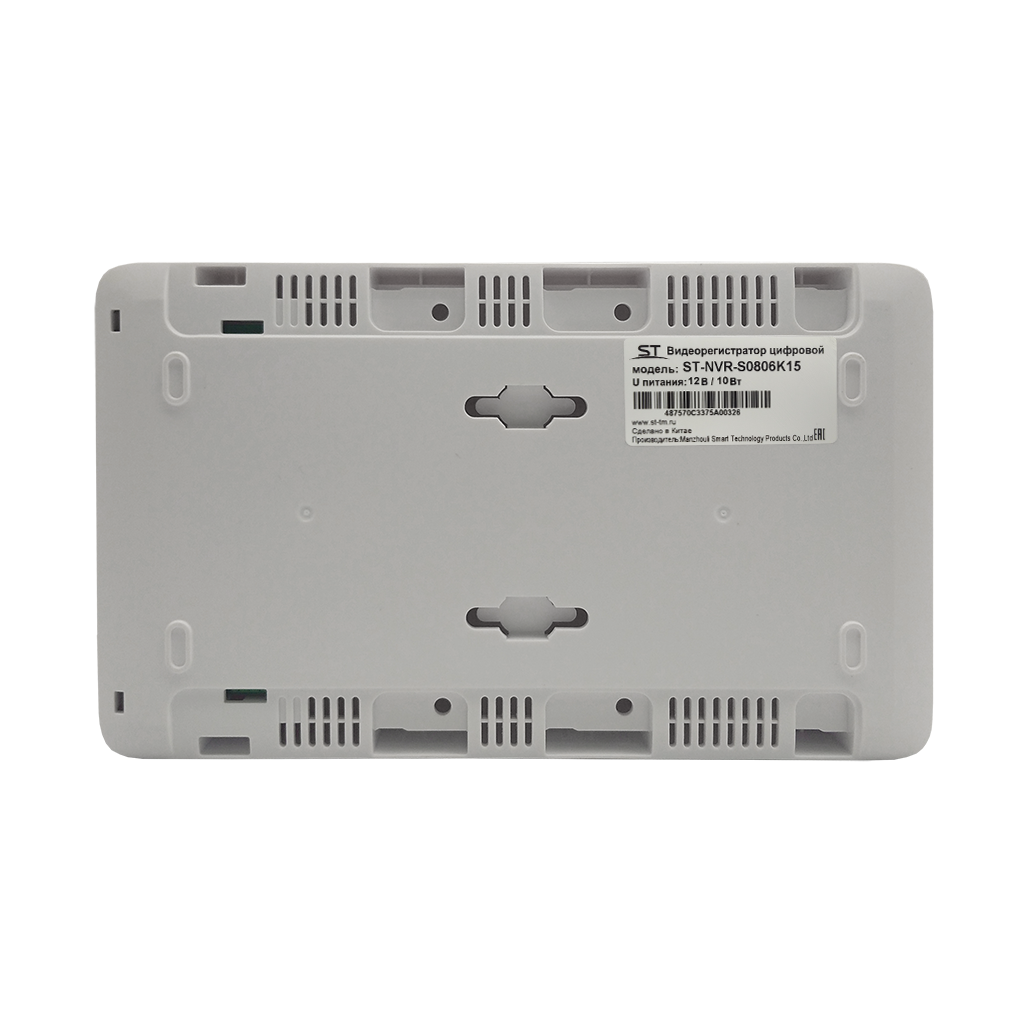 Видеорегистратор ST-NVR-S0806K15, Цифровой, режим работы:8 IP (6Mp), Всего видеовыходов: 1 (HDMI), HDMI 3840x2160,1920×1080,1440×900,1366×768,1280×800,1280×720,1024×768, Поддерживаемые видеокодеки: S+265/H.265/H.264, Поддерживаемые аудиокодеки: G.711A / G.711U / ADPCM_DIV4(8kHz - 48kHz), ACC_LC (8kHz - 48kHz), Запись IP камеры (разрешение / скорость): до 6Mp (25 к/с (зависит от камеры)), 1 HDD SATA 3.0 до 6Тб, Сетевой интерфейс: RJ-45 10/100 Mbps, P2P: VideoSight, Поддержка платформ: Android/Iphone/Windows (PC), Напряжение питания/ потребляемая мощность (без HDD): 12В / 10Вт, Рабочая температура: -10°C ~ +55°C, Габариты, мм.: 203 х 120 х 39 мм